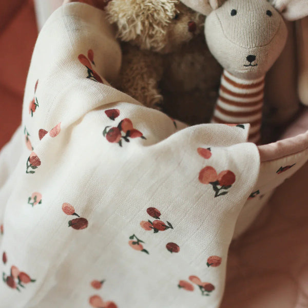 Our baby muslin swaddles are super soft and made from organic cotton. Extra large in size and made from breathable lightweight muslin, they make a perfect blanket for swaddling or when out and about in the buggy. They also double up as a breast feeding cover, buggy cover or for mopping up spills. Beautifully bundled up in a belly band, this makes the perfect gift for any new parent.