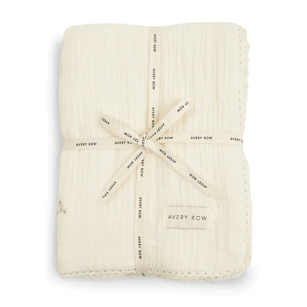 Avery Row - Embroidered Muslin blanket - Wild Chamomile