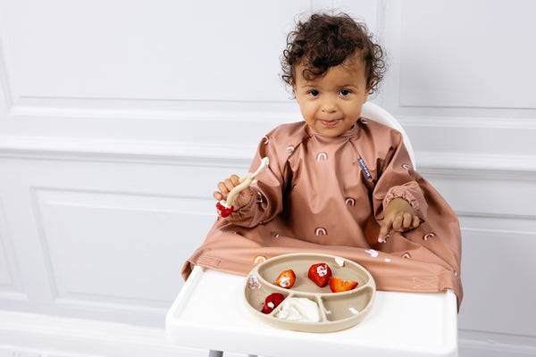 Packed with clever design features, the Bibado Coverall Weaning Bib allows little ones to enjoy their mealtime adventures without limits and in total comfort - while clothes and highchair seats remain spotlessly clean and dry.