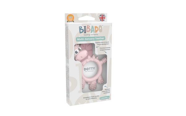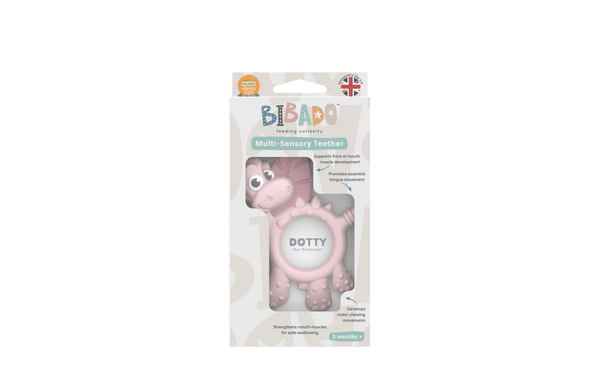 Designed by Bibado with teething and weaning experts, Dotty’s friendly character has been lovingly created to support babies on their teething and weaning journey. She’s deliberately cute and appealing so that little ones won’t want to put her down. The more time they spend exploring Dotty, the more developmental gains they’ll make!