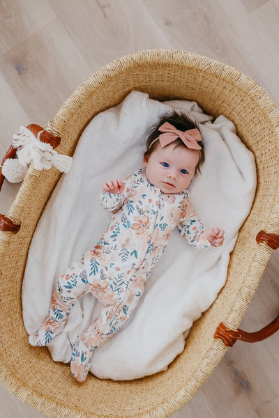 We’ve dreamed up the perfect footie pajamas, featuring buttery soft fabric, a tag-free design, and a two-way zipper for easy changing. Pick your favorite Copper Pearl print for a stylish night’s sleep!