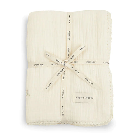 Avery Row - Embroidered Muslin blanket - Grasslands, Milky White