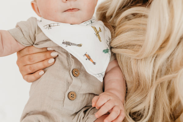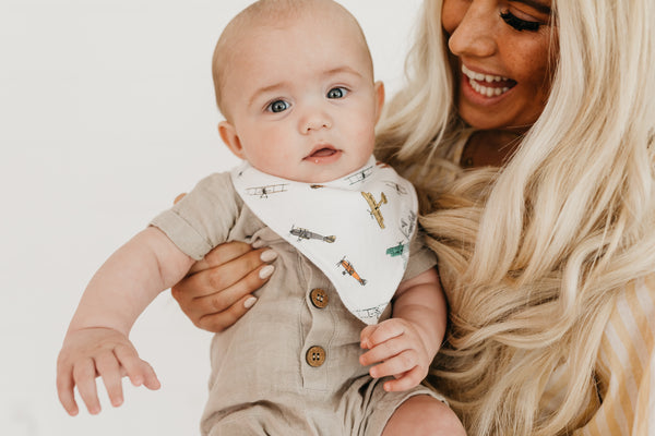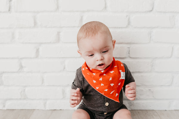 Finally, Baby bibs that are trendy, fashion forward, and functional. Your baby will have the cutest fashion accessory around, and you will keep his/her clothes clean and dry from drooling. Our bandana bibs a.k.a. bibdanas, are made of 100% cotton knit on the front and 100% soft, absorbent polyester fleece on the back. Our bibs will keep your baby dry even with lots of drool and dribble. They're great for drooling and teething babies. Designs are trendy and chic so your baby's style is sure to be noticed... You'll no longer have to worry about boring and ugly bibs covering up your child's cute outfit. 2 adjustable snaps make this great for infants and toddlers (age: 3-24 months) and get rid of that annoying Velcro.