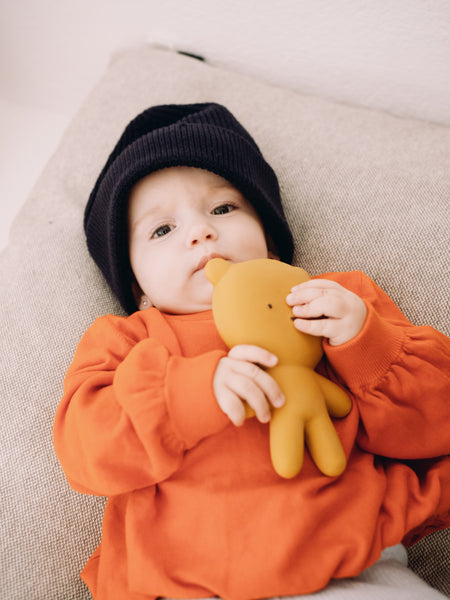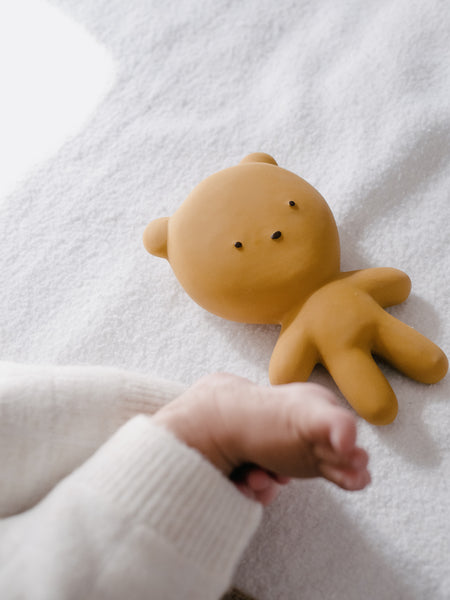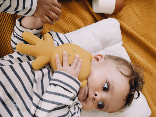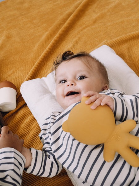 I’m made from hevea tree white sap, and I’m 100% biodegradable. I’m sustainable, born from a green production process. I’m unique, like every GOMMU, we are all handmade and I may have small imperfections, who doesn’t? I’m hand-painted with organic food graded paint and I’m PVC and BPA free. I’m also soft and chewable and I love to play in water with you! I’m safe because I’m hermetically sealed and no mold or bacteria can accumulate inside of me.