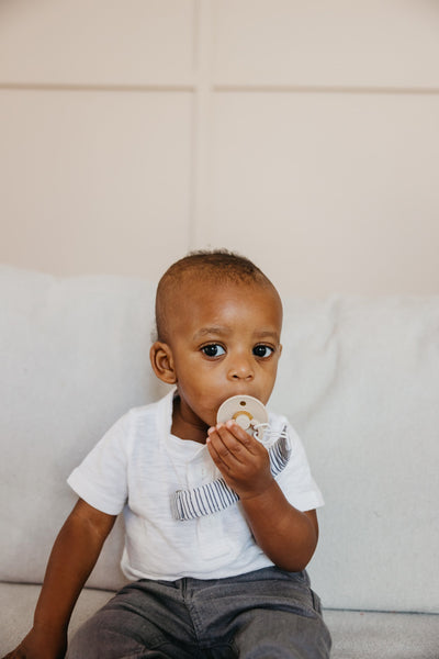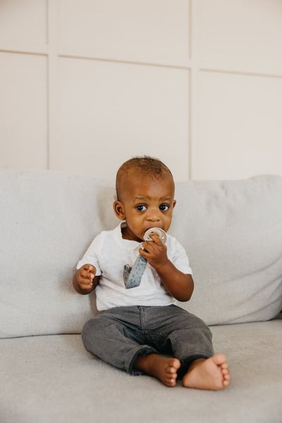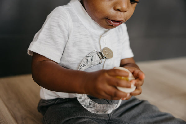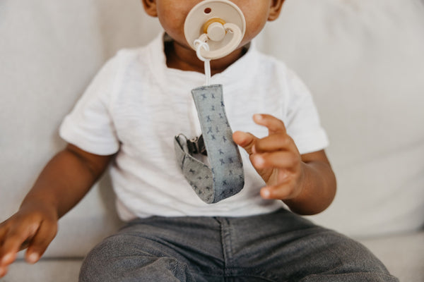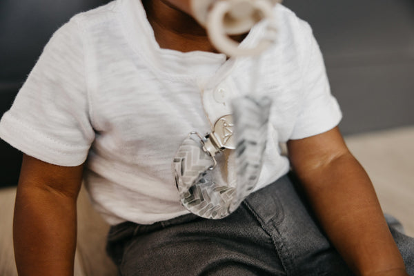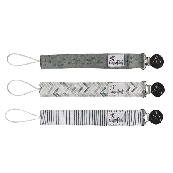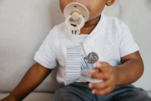 Offering the ultimate blend of fashion and function, our unique Binky Clip features a premium knit strap lined with absorbent fleece to help soak up drool. Simply attach baby's pacifier or teether to one end, then fasten the clip to clothing, blankets or baby gear. Oh, and by the way our set includes three Binky Clips to keep with you wherever you go - no more floor drops or pacifier pick-ups!