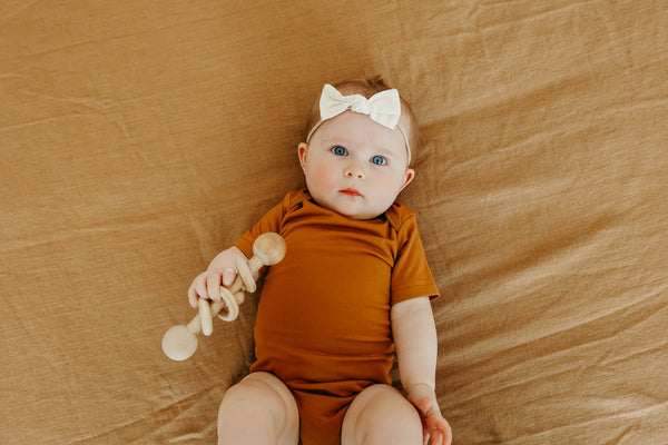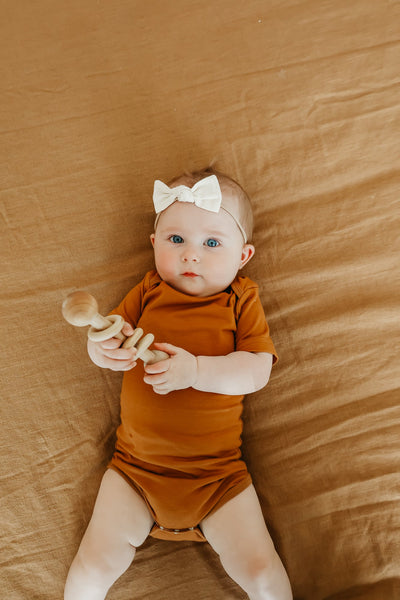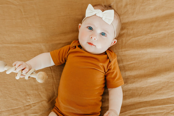 You can never have too many bodysuits. Featuring signature Copper Pearl prints and buttery soft fabric, these everyday basics feel anything but ordinary. Parents love the overlap shoulders for easy on and off.