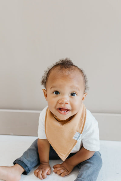 Finally, Baby bibs that are trendy, fashion forward, and functional. Your baby will have the cutest fashion accessory around, and you will keep his/her clothes clean and dry from drooling. Our bandana bibs a.k.a. bibdanas, are made of 100% cotton knit on the front and 100% soft, absorbent polyester fleece on the back. Our bibs will keep your baby dry even with lots of drool and dribble. They're great for drooling and teething babies. Designs are trendy and chic so your baby's style is sure to be noticed... You'll no longer have to worry about boring and ugly bibs covering up your child's cute outfit. 2 adjustable snaps make this great for infants and toddlers (age: 3-24 months) and get rid of that annoying Velcro.