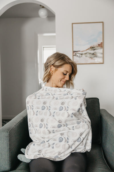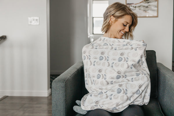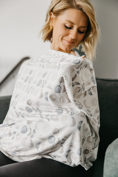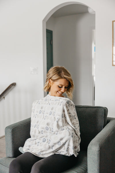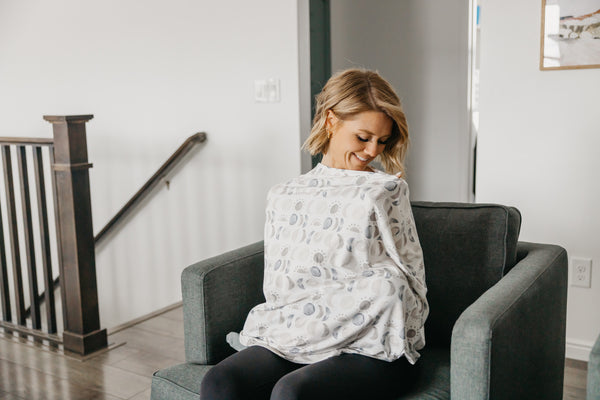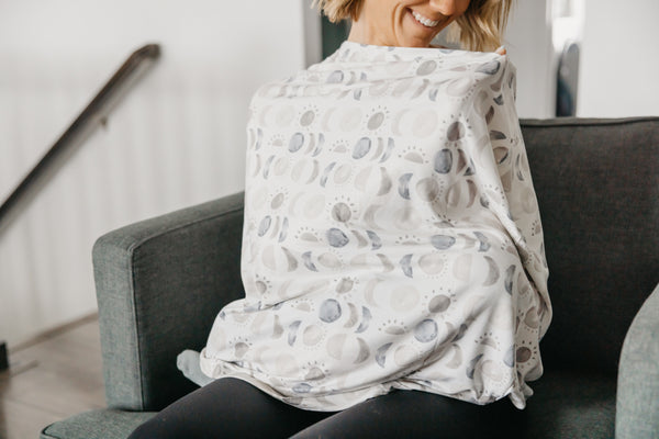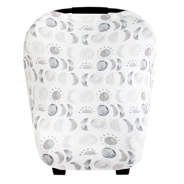 Copper Pearl TM multi-use 5-in-1 cover can be used as a car seat cover, a nursing cover, a shopping cart cover, a high chair cover, and an infinity scarf. This versatile cover is made of a high quality, stretchy, and durable fabric. The unisex, modern, and trendy fabric offers your baby protection from the elements such as wind, rain, snow, and bright light. It is quick and easy to put on and take off but snug enough that your little one can't kick it off while nursing. The cover is warm enough for the cold winter months and lightweight enough for the hot summer months. As a nursing cover, it provides full and adequate coverage for worry-free nursing. You no longer have to be nervous about nursing in public or wherever you are. The stretchy fabric also allows you to easily access to your newborn while breastfeeding, to ensure a good latch or for any other adjustments. While you are shopping, this cover protects your little one from germ infested shopping carts, providing a great alternative to using antibacterial wipes every time you go to the store. One size fits almost all models of car seats, shopping carts, and nursing mothers. Compact when folded, the cover conveniently takes up little storage space in your diaper bag or purse.