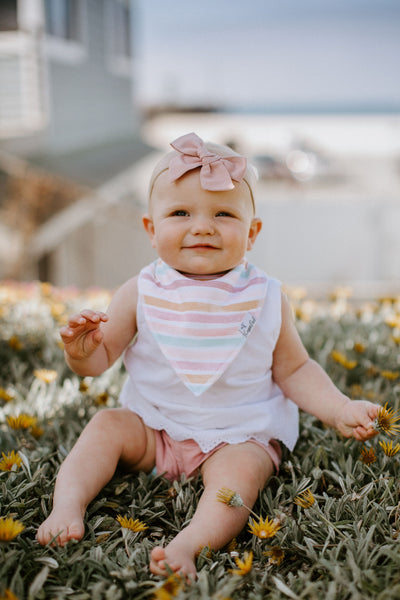 Finally, Baby bibs that are trendy, fashion forward, and functional. Your baby will have the cutest fashion accessory around, and you will keep his/her clothes clean and dry from drooling. Our bandana bibs a.k.a. bibdanas, are made of 100% cotton knit on the front and 100% soft, absorbent polyester fleece on the back. Our bibs will keep your baby dry even with lots of drool and dribble. They're great for drooling and teething babies. Designs are trendy and chic so your baby's style is sure to be noticed... You'll no longer have to worry about boring and ugly bibs covering up your child's cute outfit. 2 adjustable snaps make this great for infants and toddlers (age: 3-24 months) and get rid of that annoying Velcro.