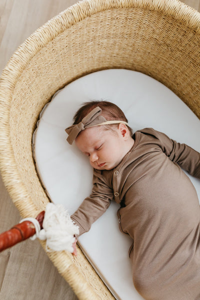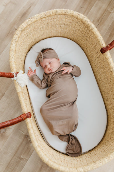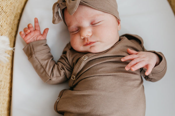 Made with the same premium knit fabric as our beloved swaddles, this soft and stretchy gown ties at the bottom for easy diaper changes—and room to grow. Available in your favorite Copper Pearl prints, it features unique snaps to make dressing a breeze, along with fold-over hand mitts to prevent scratching. Sure to be baby’s favorite outfit!