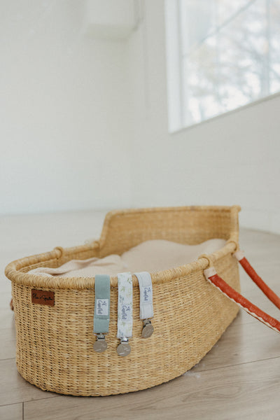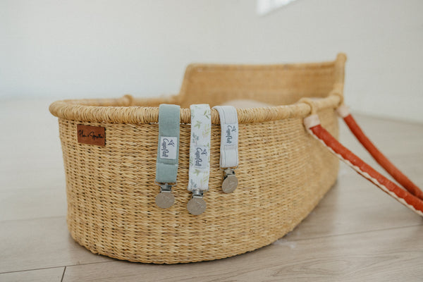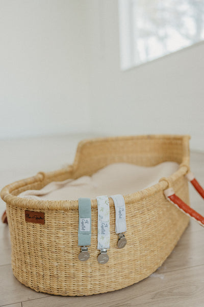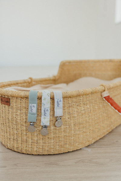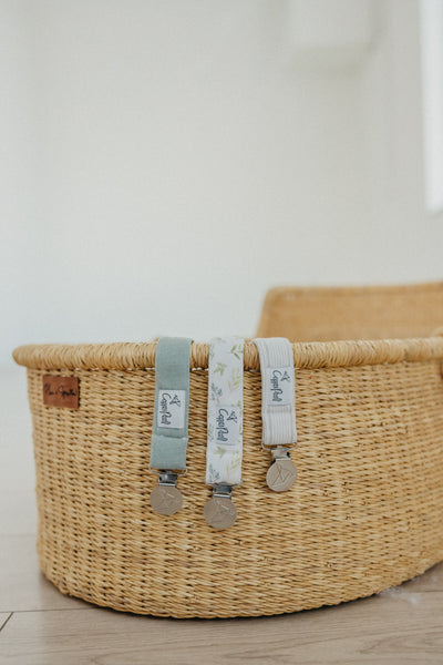 A chic way to keep baby's pacifier close at hand.