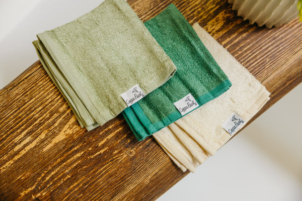 Finally, a washcloth that does it all! Soft enough to clean the most sensitive baby's skin, but durable enough to tackle the toughest household cleaning project, Copper Pearl's 100% Rayon from Bamboo Fiber washcloths are an absolute must have for any new or seasoned parent. Have a baby with a skin condition--eczema, baby acne, or food allergies? No problem! Our ultra soft terry cloths are perfect for protecting baby's delicate skin. The large 11x11 inch size is perfect for baby's bath time, but also transitions to household chores, making these washcloths a perfect replacement for old, dingy cleaning cloths. Delivered in premium packaging, these versatile washcloths are a perfect gift, sure to be loved by the recipient!