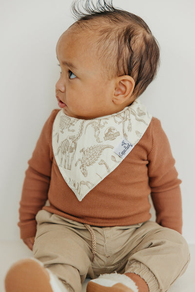 Finally, Baby bibs that are trendy, fashion forward, and functional. Your baby will have the cutest fashion accessory around, and you will keep his/her clothes clean and dry from drooling. Our bandana bibs a.k.a. bibdanas, are made of 100% cotton knit on the front and 100% soft, absorbent polyester fleece on the back. Our bibs will keep your baby dry even with lots of drool and dribble. They're great for drooling and teething babies. Designs are trendy and chic so your baby's style is sure to be noticed... You'll no longer have to worry about boring and ugly bibs covering up your child's cute outfit. 2 adjustable snaps make this great for infants and toddlers (age: 3-24 months) and get rid of that annoying Velcro.
