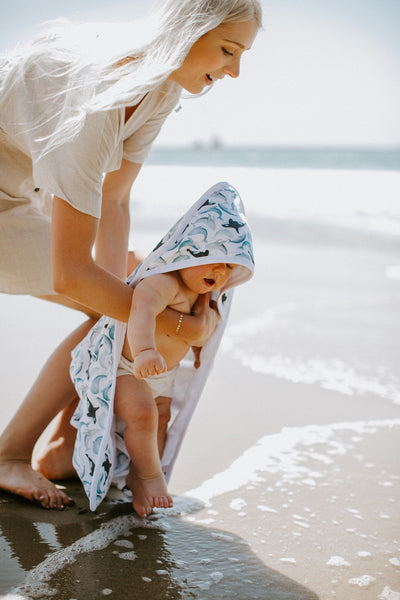Who says tub time can't be trendy? Fashion meets function yet again with Copper Pearl Hooded Towels, a bath time routine essential with elevated style.  100% cotton muslin, in modern patterns and colors, is paired with fluffy terry cloth to provide the ultimate warmth and comfort. Each of our towels is crafted with a cozy hood and pint-sized pockets, the perfect way to keep little heads and hands warm and snuggly at tub time.