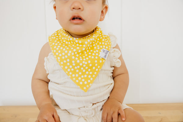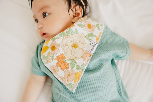 Finally, Baby bibs that are trendy, fashion forward, and functional. Your baby will have the cutest fashion accessory around, and you will keep his/her clothes clean and dry from drooling. Our bandana bibs a.k.a. bibdanas, are made of 100% cotton knit on the front and 100% soft, absorbent polyester fleece on the back. Our bibs will keep your baby dry even with lots of drool and dribble. They're great for drooling and teething babies. Designs are trendy and chic so your baby's style is sure to be noticed... You'll no longer have to worry about boring and ugly bibs covering up your child's cute outfit. 2 adjustable snaps make this great for infants and toddlers (age: 3-24 months) and get rid of that annoying Velcro.