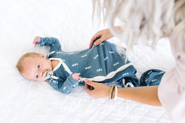 Made with the same premium knit fabric as our beloved swaddles, this soft and stretchy gown ties at the bottom for easy diaper changes—and room to grow. Available in your favorite Copper Pearl prints, it features unique snaps to make dressing a breeze, along with fold-over hand mitts to prevent scratching. Sure to be baby’s favorite outfit!