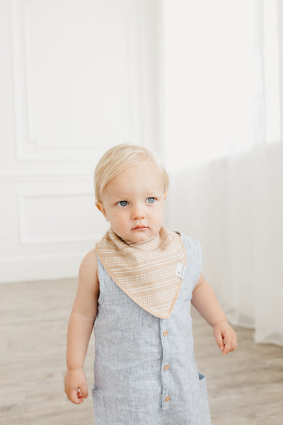 Finally, Baby bibs that are trendy, fashion forward, and functional. Your baby will have the cutest fashion accessory around, and you will keep his/her clothes clean and dry from drooling. Our bandana bibs a.k.a. bibdanas, are made of 100% cotton knit on the front and 100% soft, absorbent polyester fleece on the back. Our bibs will keep your baby dry even with lots of drool and dribble. They're great for drooling and teething babies. Designs are trendy and chic so your baby's style is sure to be noticed... You'll no longer have to worry about boring and ugly bibs covering up your child's cute outfit. 2 adjustable snaps make this great for infants and toddlers (age: 3-24 months) and get rid of that annoying Velcro.