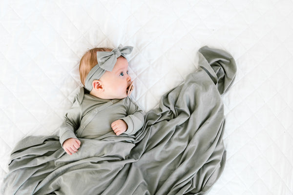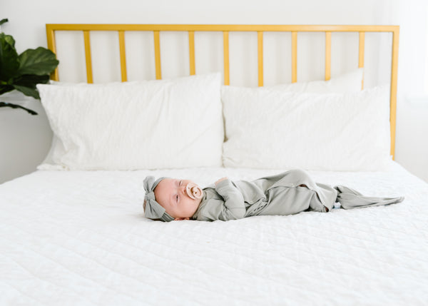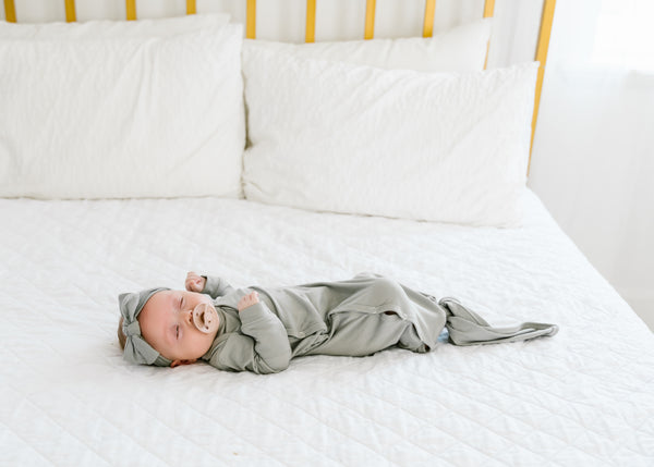 Made with the same premium knit fabric as our beloved swaddles, this soft and stretchy gown ties at the bottom for easy diaper changes and room to grow. Available in your favorite Copper Pearl prints, it features unique snaps to make dressing a breeze, along with fold-over hand mitts to prevent scratching. Sure to be baby's favorite outfit!
