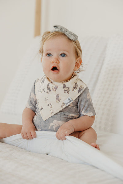 Finally, Baby bibs that are trendy, fashion forward, and functional. Your baby will have the cutest fashion accessory around, and you will keep his/her clothes clean and dry from drooling. Our bandana bibs a.k.a. bibdanas, are made of 100% cotton knit on the front and 100% soft, absorbent polyester fleece on the back. Our bibs will keep your baby dry even with lots of drool and dribble. They're great for drooling and teething babies. Designs are trendy and chic so your baby's style is sure to be noticed... You'll no longer have to worry about boring and ugly bibs covering up your child's cute outfit. 2 adjustable snaps make this great for infants and toddlers (age: 3-24 months) and get rid of that annoying Velcro.