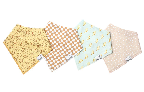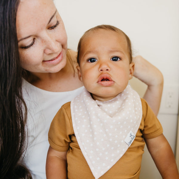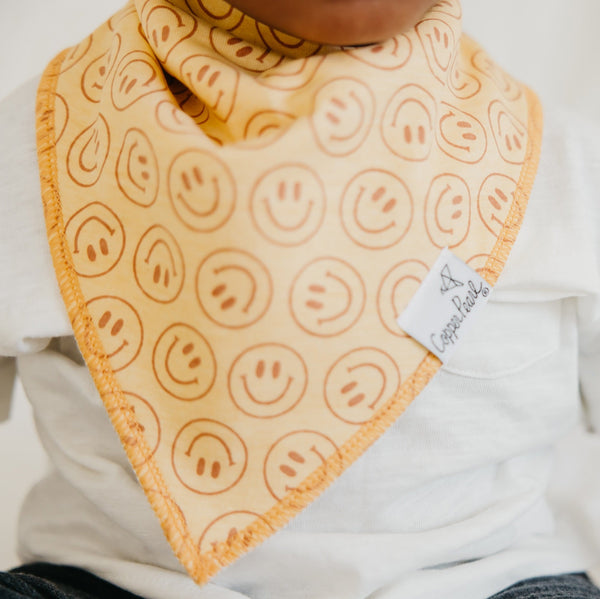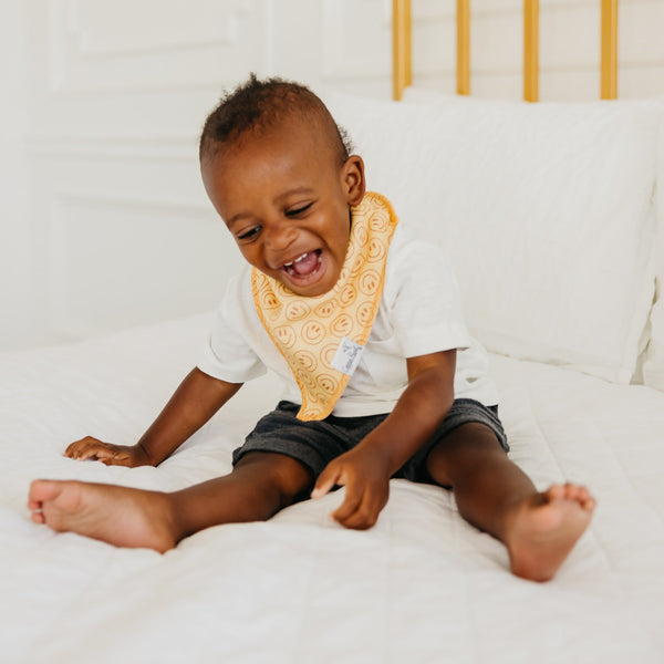 Finally, Baby bibs that are trendy, fashion forward, and functional. Your baby will have the cutest fashion accessory around, and you will keep his/her clothes clean and dry from drooling. Our bandana bibs a.k.a. bibdanas, are made of 100% cotton knit on the front and 100% soft, absorbent polyester fleece on the back. Our bibs will keep your baby dry even with lots of drool and dribble. They're great for drooling and teething babies. Designs are trendy and chic so your baby's style is sure to be noticed... You'll no longer have to worry about boring and ugly bibs covering up your child's cute outfit. 2 adjustable snaps make this great for infants and toddlers (age: 3-24 months) and get rid of that annoying Velcro.