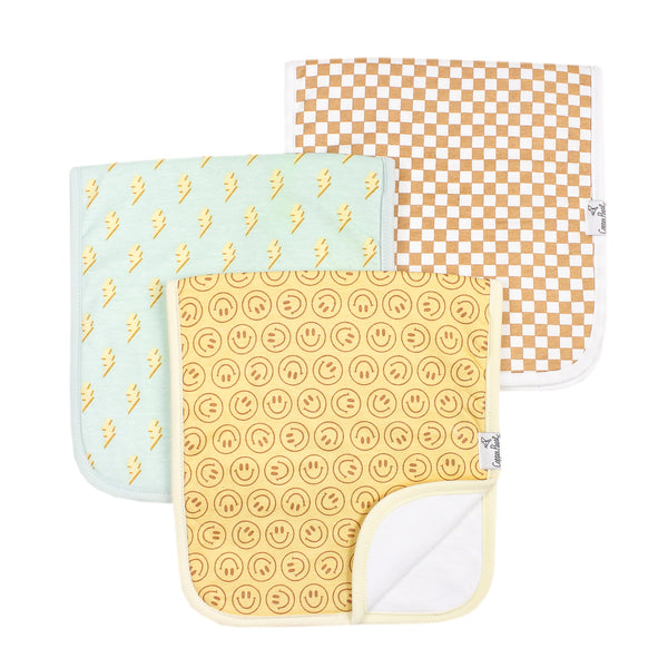 Baby burp time is suddenly on point thanks to the trendy, beloved fabrics that made you fall in love with Copper Pearl!  Who would have thought baby could spit up in style?  Designed to pair perfectly with our bandana bib sets, the front of each fashion-forward burp cloth comes in modern, chic patterns on 100% cotton. The “fashion meets function” Copper Pearl standard strikes gold again with these burp cloths; the dreaded leakage of spit up and drool onto parent clothing are a problem of the past!  A middle fleece layer provides superior absorbency, stopping those unpleasant baby fluids in their tracks.  A generous 21x10 inch size provides greater shoulder coverage (and less outfit changes) for Mom and Dad.  A must-have essential for any new or seasoned parent, our Copper Pearl burp cloths make the perfect gift for any occasion.