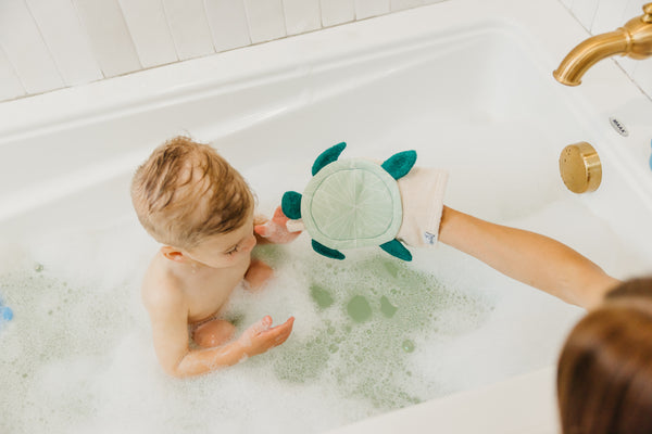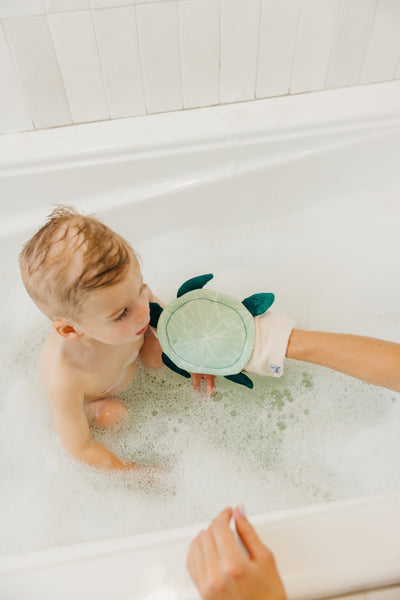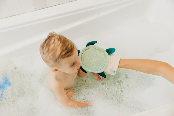 Made of super-soft bamboo terry cloth. Featuring loops to hang dry, the mitts have a universal fit for any-size hand.