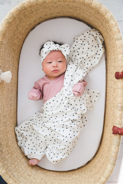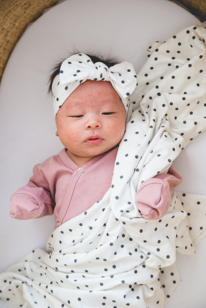 Perfectly sized for newborns, our stylish headband features enough stretch to grow with your baby through the first few months. They are made from the same premium knit fabric as the Copper Pearl swaddles, hats, quilts, security blankets and covers.