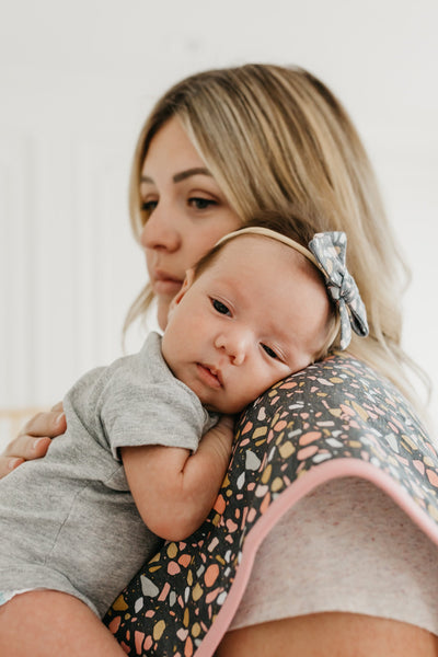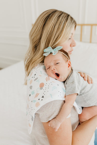 Baby burp time is suddenly on point thanks to the trendy, beloved fabrics that made you fall in love with Copper Pearl!  Who would have thought baby could spit up in style?  Designed to pair perfectly with our bandana bib sets, the front of each fashion-forward burp cloth comes in modern, chic patterns on 100% cotton. The “fashion meets function” Copper Pearl standard strikes gold again with these burp cloths; the dreaded leakage of spit up and drool onto parent clothing are a problem of the past!  A middle fleece layer provides superior absorbency, stopping those unpleasant baby fluids in their tracks.  A generous 21x10 inch size provides greater shoulder coverage (and less outfit changes) for Mom and Dad.  A must-have essential for any new or seasoned parent, our Copper Pearl burp cloths make the perfect gift for any occasion.