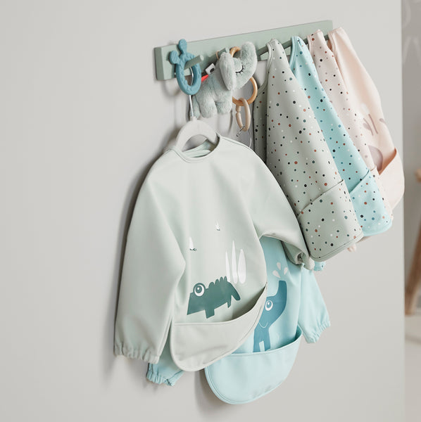 The Sleeved pocket bib will protect your little eater at mealtime or when it's time to get creative with painting, play dough and such. An adjustable double closing makes sure that the bib fits both babies and toddlers.