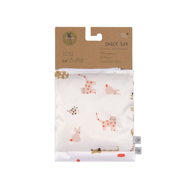 It is not only a real eye-catcher with its sweet animal designs, but also incredibly practical. The water-repellent, BPA-free material prevents from moisture. Sustainability has not been overlooked either. The Snack Bag can be used as often as you like since it is washable at 104°F and zipped close.