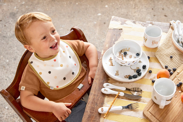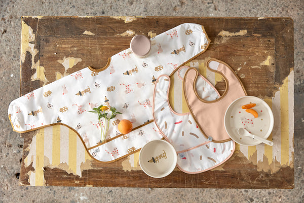 The bibs with the cute pet motifs protect babies’ clothing not only while they are making their first attempts at feeding themselves but are also ideal for messy activities and play.