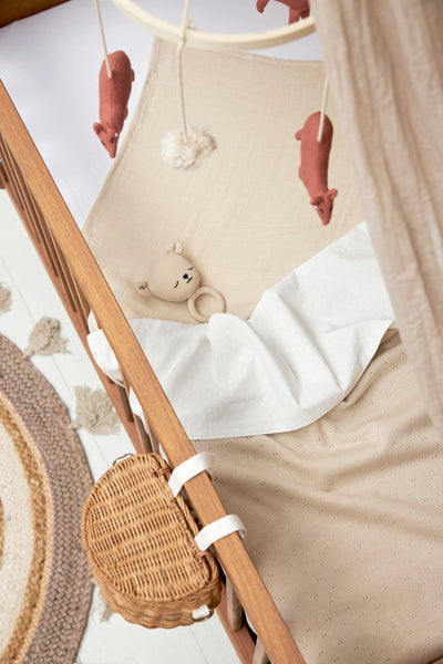 For your baby, there is nothing better than being tucked into bed under this Meyco Baby bamboo Ajour blanket. The subtle Ajour pattern adds a romantic and luxurious touch to the blanket. You have a choice of various calm, solid colors that can easily be combined with other items from the Meyco Baby collection.