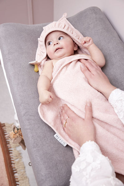 The Meyco Baby terry Ruffle bathcape is made from wonderfully soft 100% cotton terry cloth. This bathcape is a must-have for every little one. After bathing, showering, or swimming, wrap your child in this cape and pull the hood over their head. This creates a sense of security that your little one will love.
