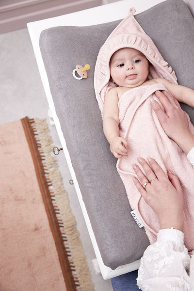 The bathcape is not only functional and stylish but also of high quality. The soft cotton terry cloth ensures that your little one dries quickly and stays warm after bathing. Moreover, the bath cape is easy to wash and can withstand many washes. Choose from a variety of beautiful solid colors and mix & match the bath cape with the complete Meyco Baby collection.