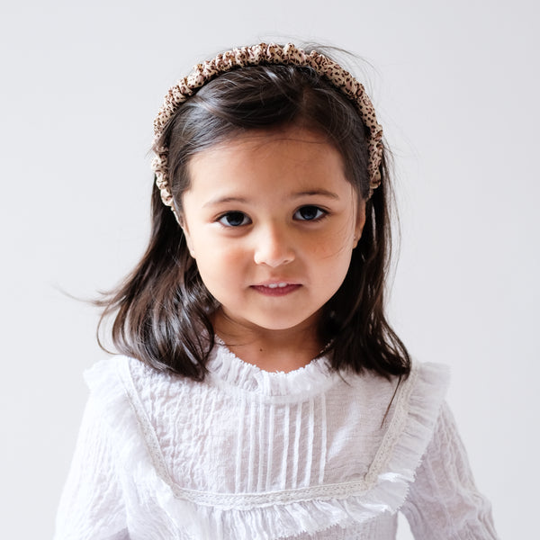 We've taken our favourite print of the season, given it the look of a scrunchie and turned it into a super cool alice band! Wrapped with the prettiest ruched leopard print fabric, this alice band will compliment almost any outfit and is light and comfortable enough to wear all day, no hairband headaches here!