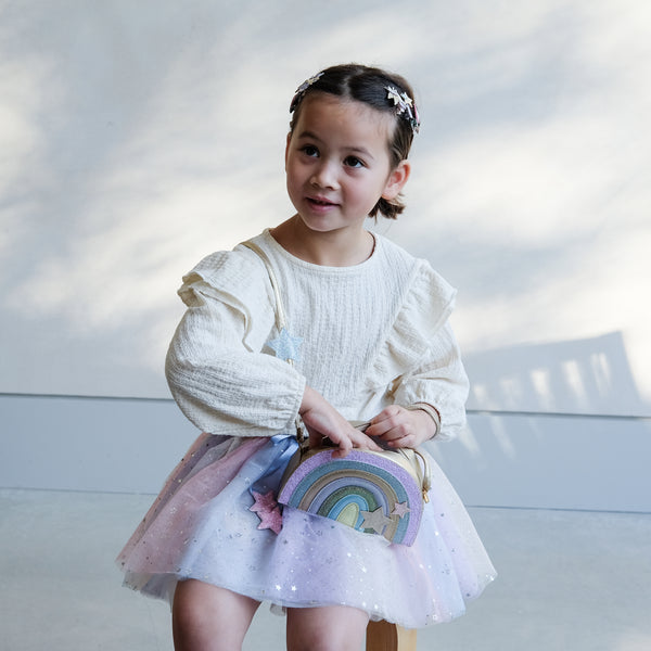This tutu has an elasticated waistband to fit all ages from 3-10. From parties, to play, to everyday, this tutu can be worn in lots of different ways. Go full fairy by matching with wings and a wand or dress down with a T-shirt and pair of glittery glasses!