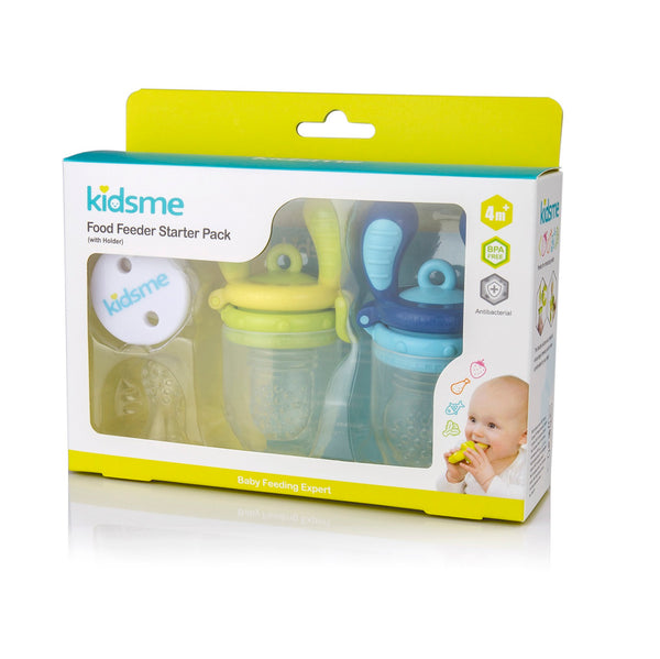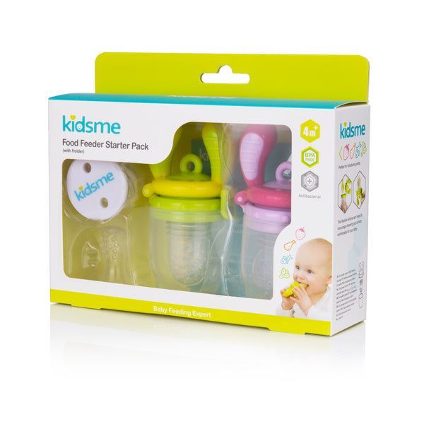 Designed to accomodate a growing appetite and ongoing development, the kidsme starter pack includes two food feeders with interchange able Small, medium & large silicone sacs for your little ones to explore new tastes and textures accordingly. includes 160337 & 160350 & 160371 (1pc) & 160128.