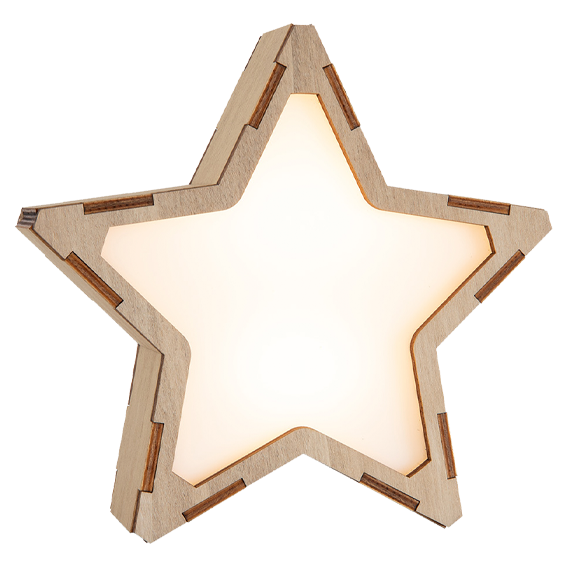 Star-shaped lamp, handmade from wood from sustainable forests.